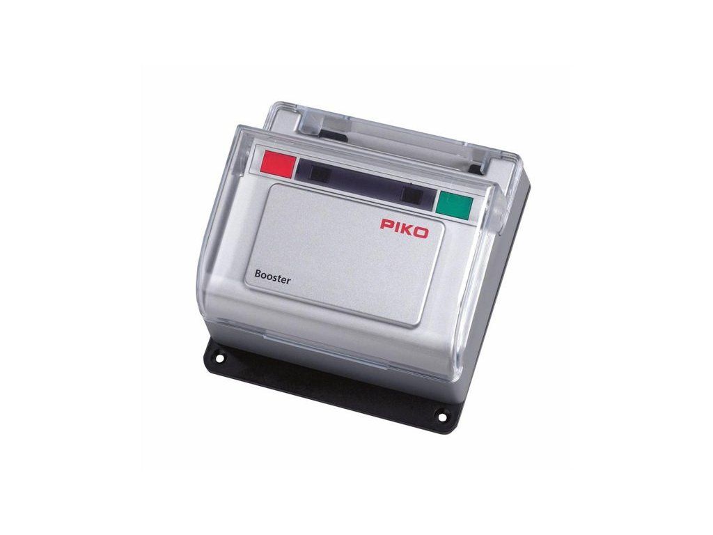 Zesilovač zvyšuje současnou kapacitu digitálního systému PIKO na vašem kolejovém okruhu G. Může poskytnout až 22 voltů a 5 ampérů na celé trati. To vám dává možnost vychutnat si digitální provoz většího uspořádání okruhu s více vlaky nebo dokonce více nezávislých okruhů kolejí. Každý zesilovač napájí elektricky izolovaný traťový úsek nebo „blok“. Zesilovač nesmí být připojen ke stejnému bloku jako digitální centrální stanice, jiný zesilovač nebo jiný zdroj napájení. Krátkodobé přemostění elektrické mezery při přechodu vlaku z jednoho bloku do druhého je normální a přijatelné. Nikdy však nedovolte, aby lokomotiva (nebo vůz s kovovými koly) zůstal na místě tvořícím mezeru mezi dvěma izolovanými úseky.